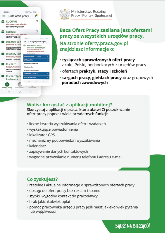 Przedstawia metody i narzędzia poszukiwania pracy, w tym platformy ePraca i EURES, oraz informacje o zatrudnianiu cudzoziemców i warunkach pracy w Polsce. Dokument zawiera również informacje o szkołach, uczelniach wyższych i instytucjach szkoleniowych dostępnych w regionie, a także o sposobach rekrutacji i prowadzenia rozmów kwalifikacyjnych. Omówione są warunki świadczenia pracy oraz zasady podejmowania działalności gospodarczej i ekonomii społecznej.